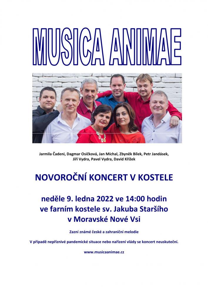 Jste srdečně zváni na Novoroční koncert MUSICA ANIMAE, který se koná v neděli 9.1. ve 14 h. v kostele sv. Jakuba v Moravské Nové Vsi.