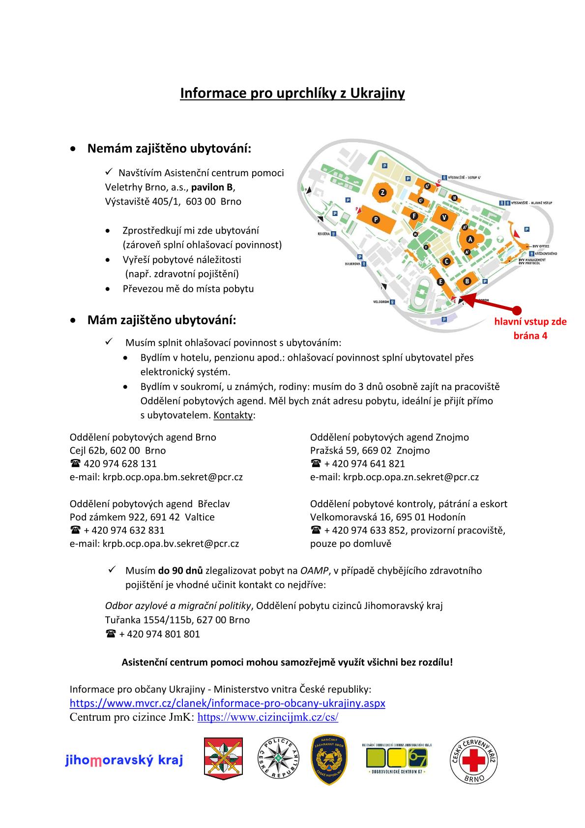 - Informace pro ubytovatele, kteří chtějí ubytovat uprchlíky z Ukrajiny: zde česky zde ukrajinsky