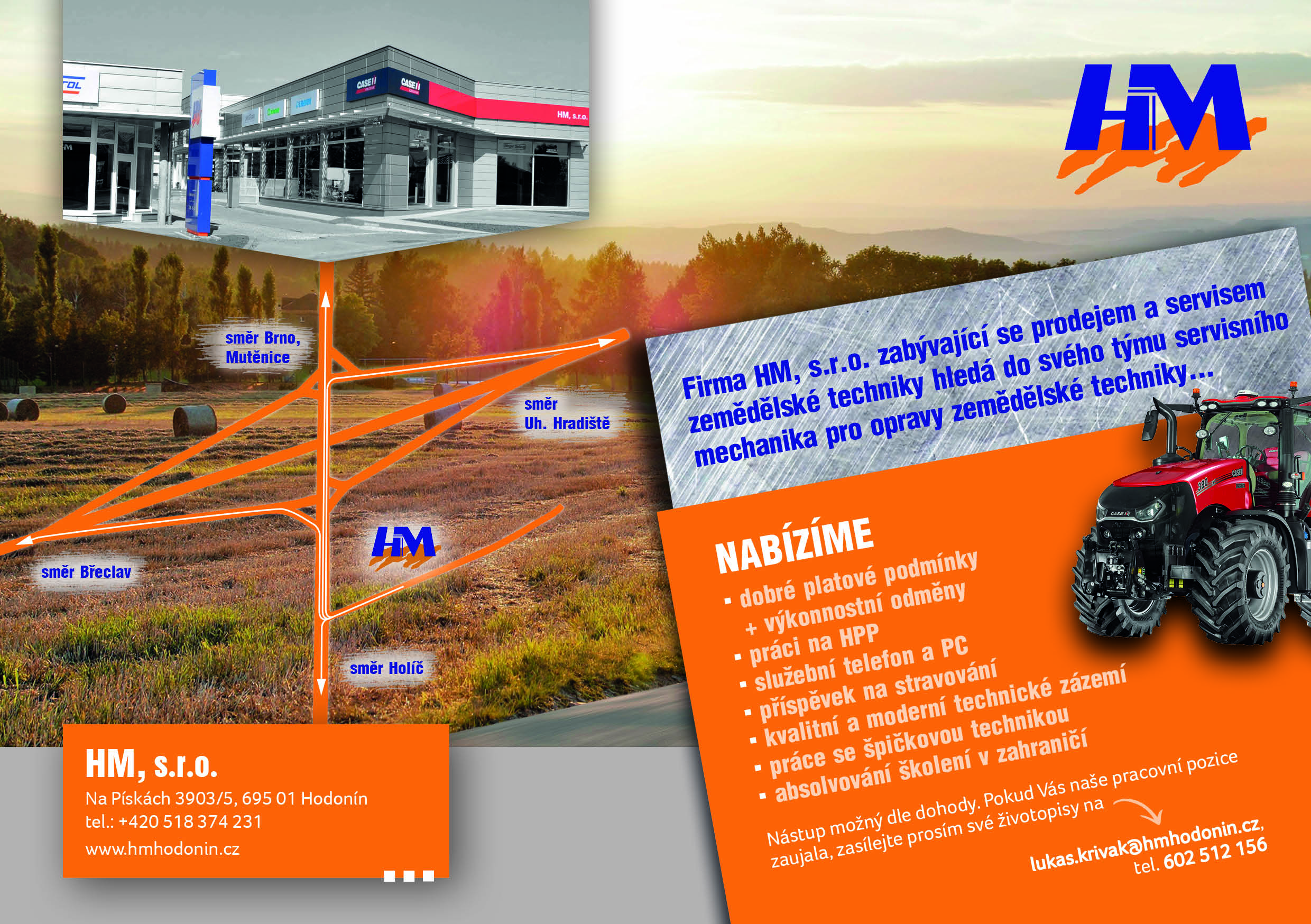 - Společnost HM s.r.o. Hodonín přijme zaměstnance - servisního mechanika zemědělských strojů, více info zde