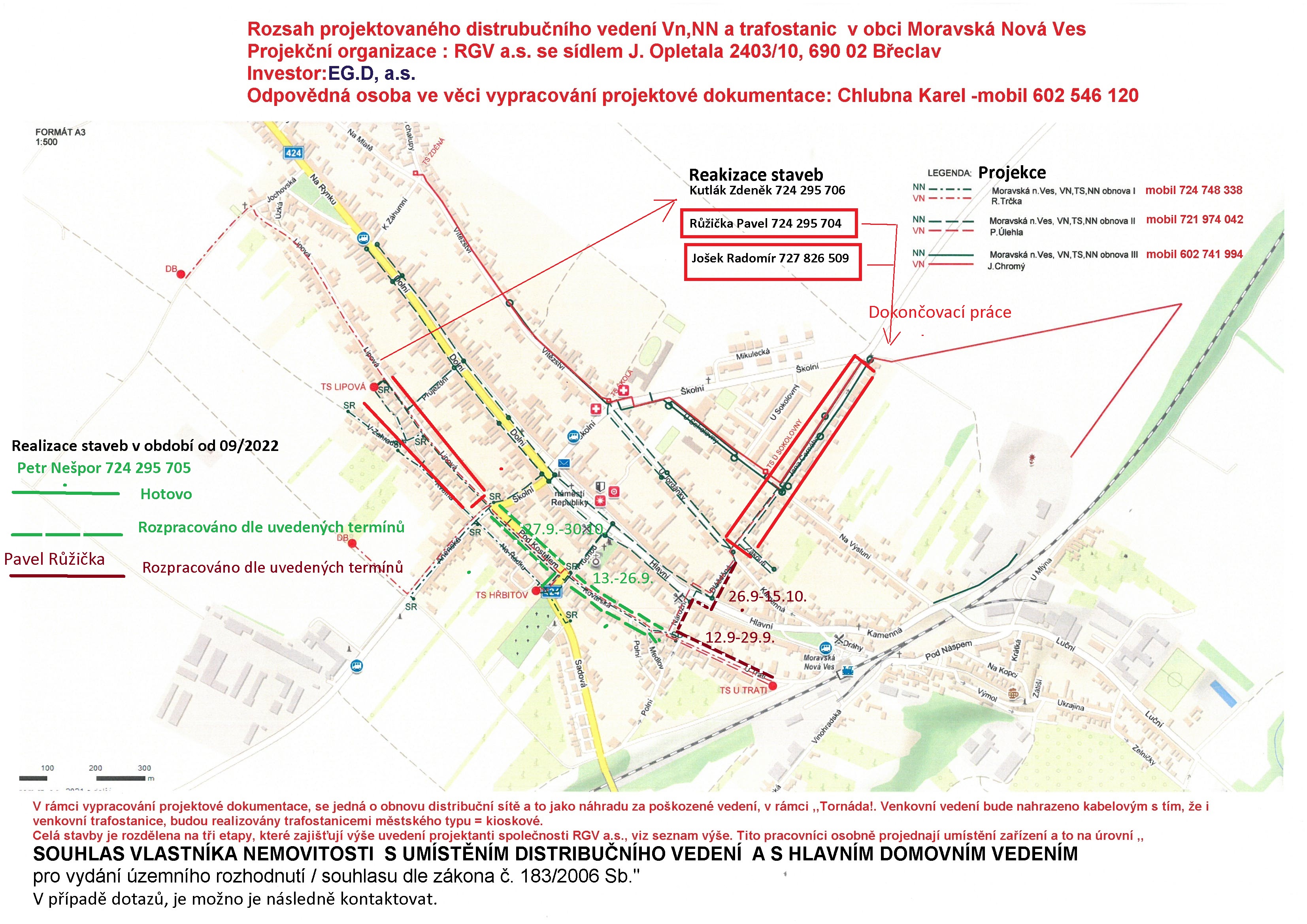- Rozsah projektovaného distribučního vedení NN, VN a trafostanic - situace k nahlédnutí zde