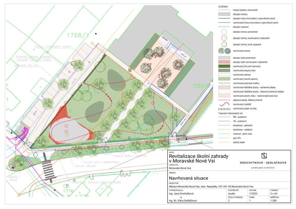Bude provedena obnova veřejného prostoru před základní školou, který byl zasažen tornádem v roce 2021. Bude obnoveno oplocení, plotová zídka, komunikace, parkoviště a veřejné osvětlení. Dále bude obnovena parková část, zeleň a herní prvky.
