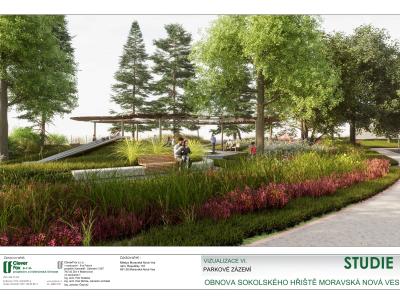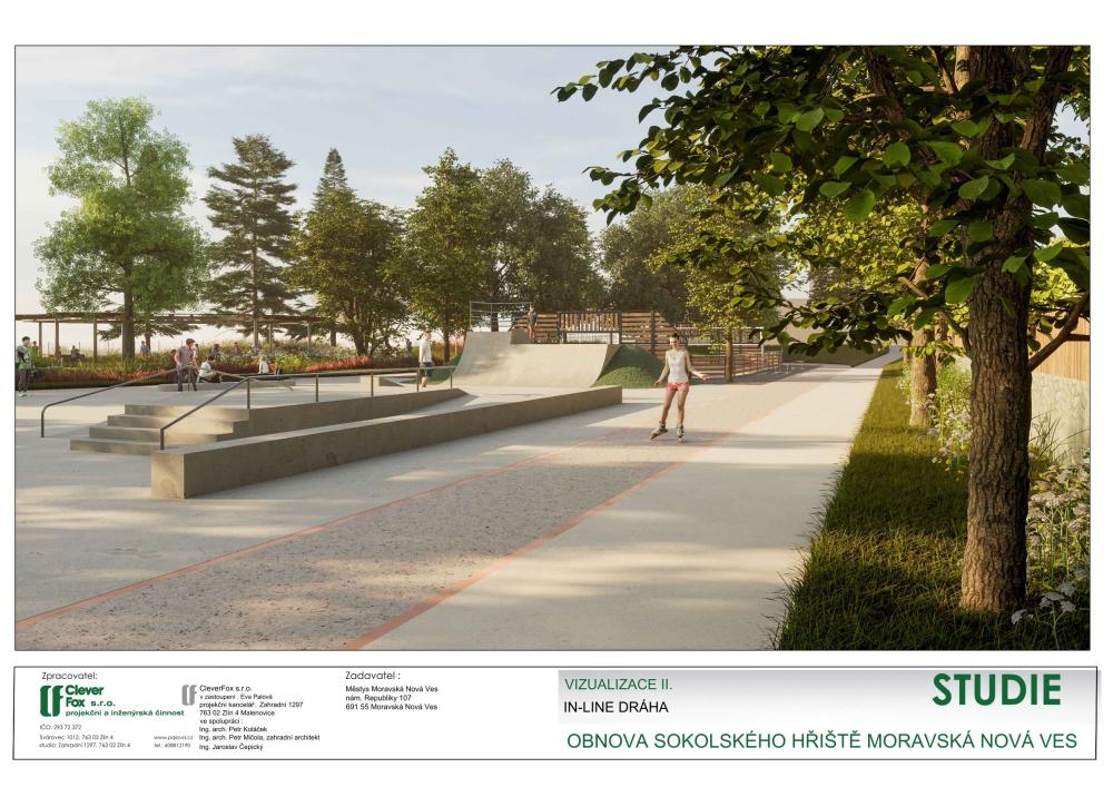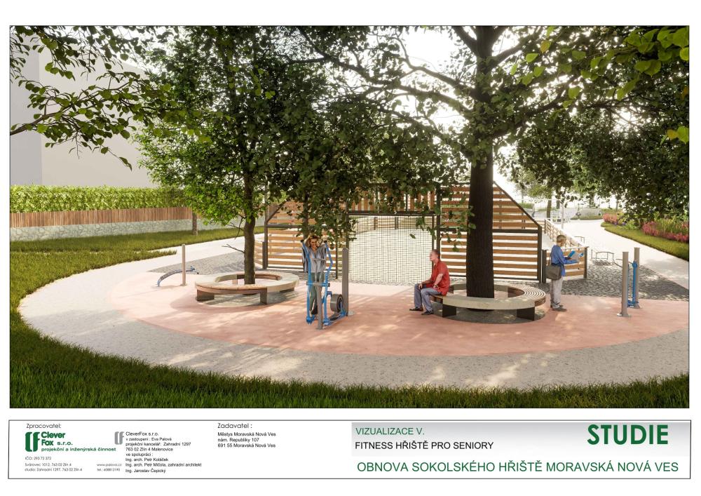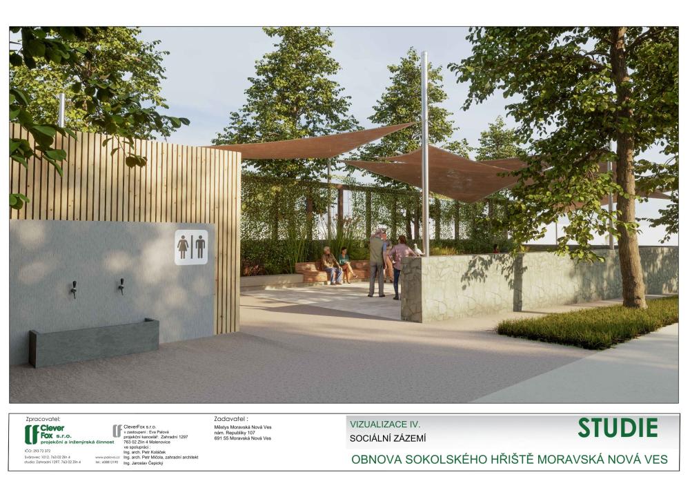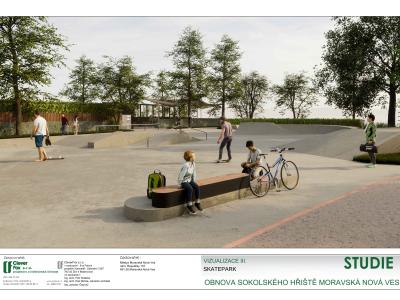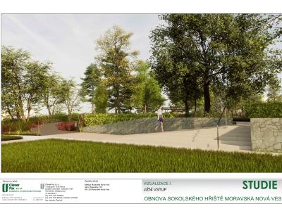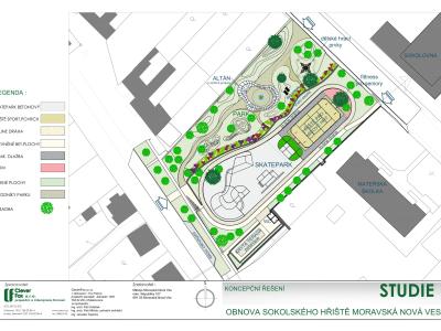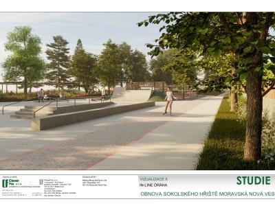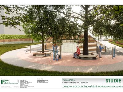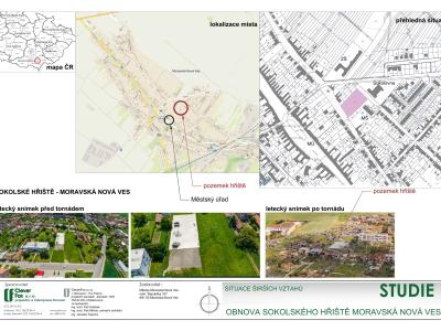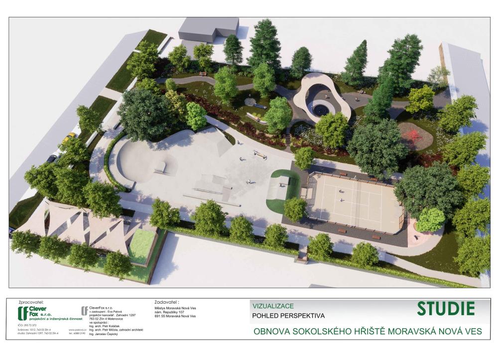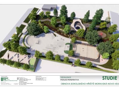 Jedná s o obnovu Sokolského hřiště, které bylo poškozeno tornádem. Pozemek sokolského hřiště se po tornádu 24.6.2021 stal navíc skládkou stavebního odpadu a suti, odstraňovaných a likvidovaných škod na budovách a domech Moravské Nové Vsi. Hřiště, vzhledem ke svým poškozením, nemůže sloužit svému účelu - tedy sportovním a rekreačně-oddychovým aktivitám. Konkrétně bude obnovena sportovní část (víceúčelové hřiště, in-line dráha, fitness sektor, dlažba), skatepark, oplocení mezi řešeným prostorem a areálem MŠ, zídka od ulice U Jordánky a osvětlení areálu. Na části sokolského hřiště (na současné travnaté ploše) je plánována výsadba zeleně, modrozelená infrastruktura, mobiliář a dětské prvky.