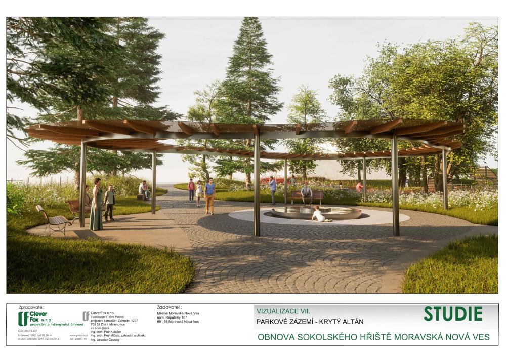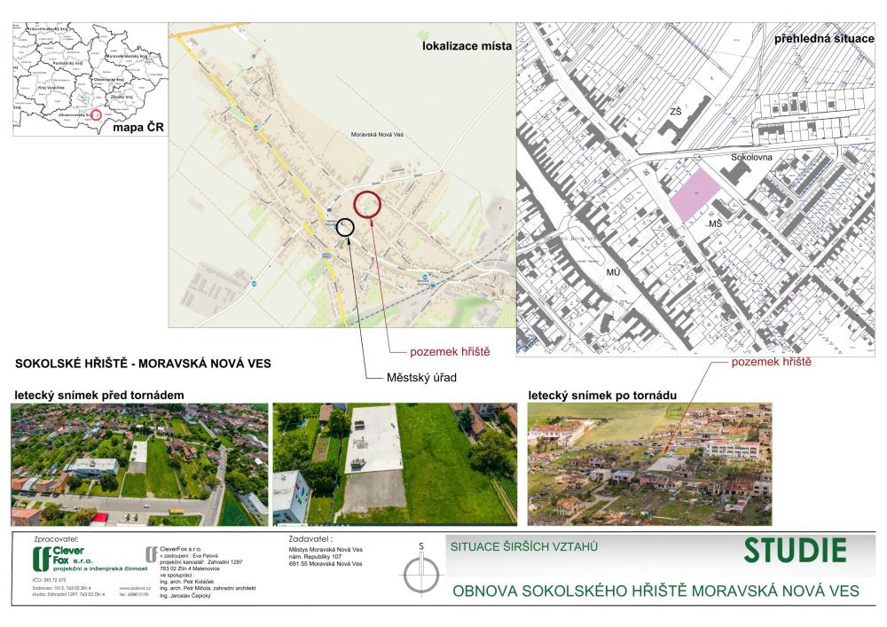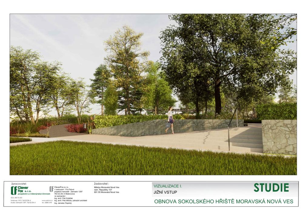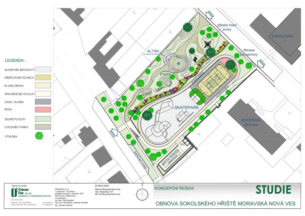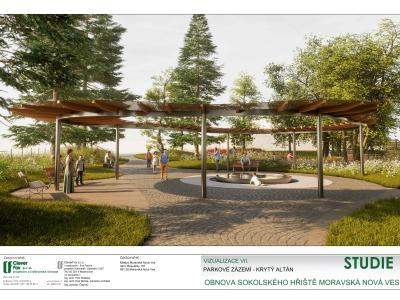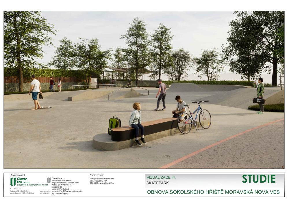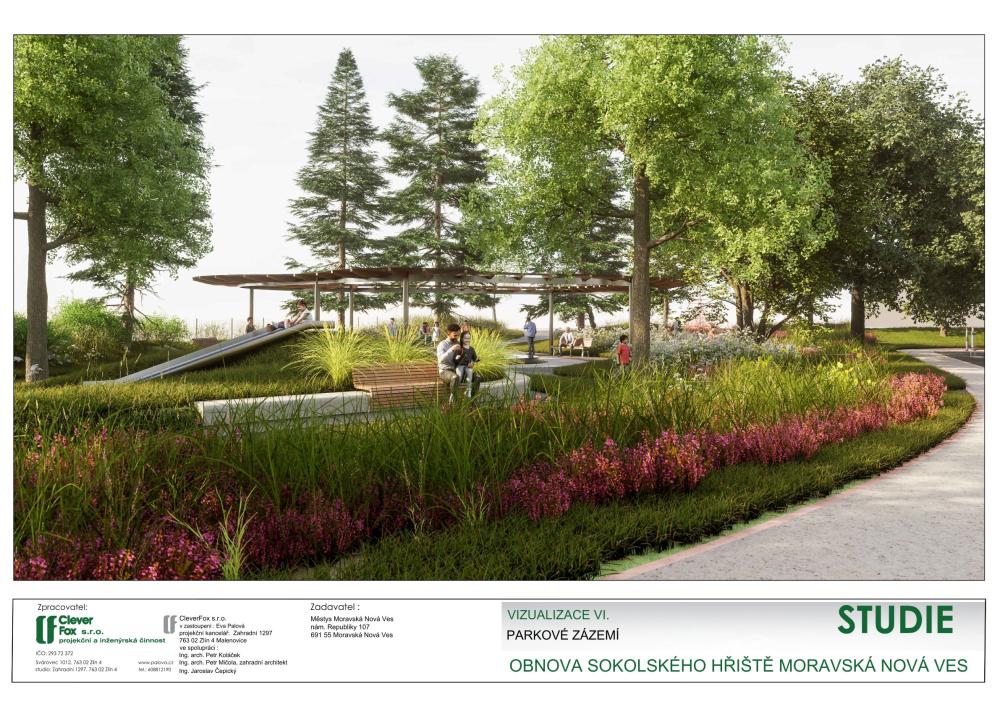 Jedná s o obnovu Sokolského hřiště, které bylo poškozeno tornádem. Pozemek sokolského hřiště se po tornádu 24.6.2021 stal navíc skládkou stavebního odpadu a suti, odstraňovaných a likvidovaných škod na budovách a domech Moravské Nové Vsi. Hřiště, vzhledem ke svým poškozením, nemůže sloužit svému účelu - tedy sportovním a rekreačně-oddychovým aktivitám. Konkrétně bude obnovena sportovní část (víceúčelové hřiště, in-line dráha, fitness sektor, dlažba), skatepark, oplocení mezi řešeným prostorem a areálem MŠ, zídka od ulice U Jordánky a osvětlení areálu. Na části sokolského hřiště (na současné travnaté ploše) je plánována výsadba zeleně, modrozelená infrastruktura, mobiliář a dětské prvky.